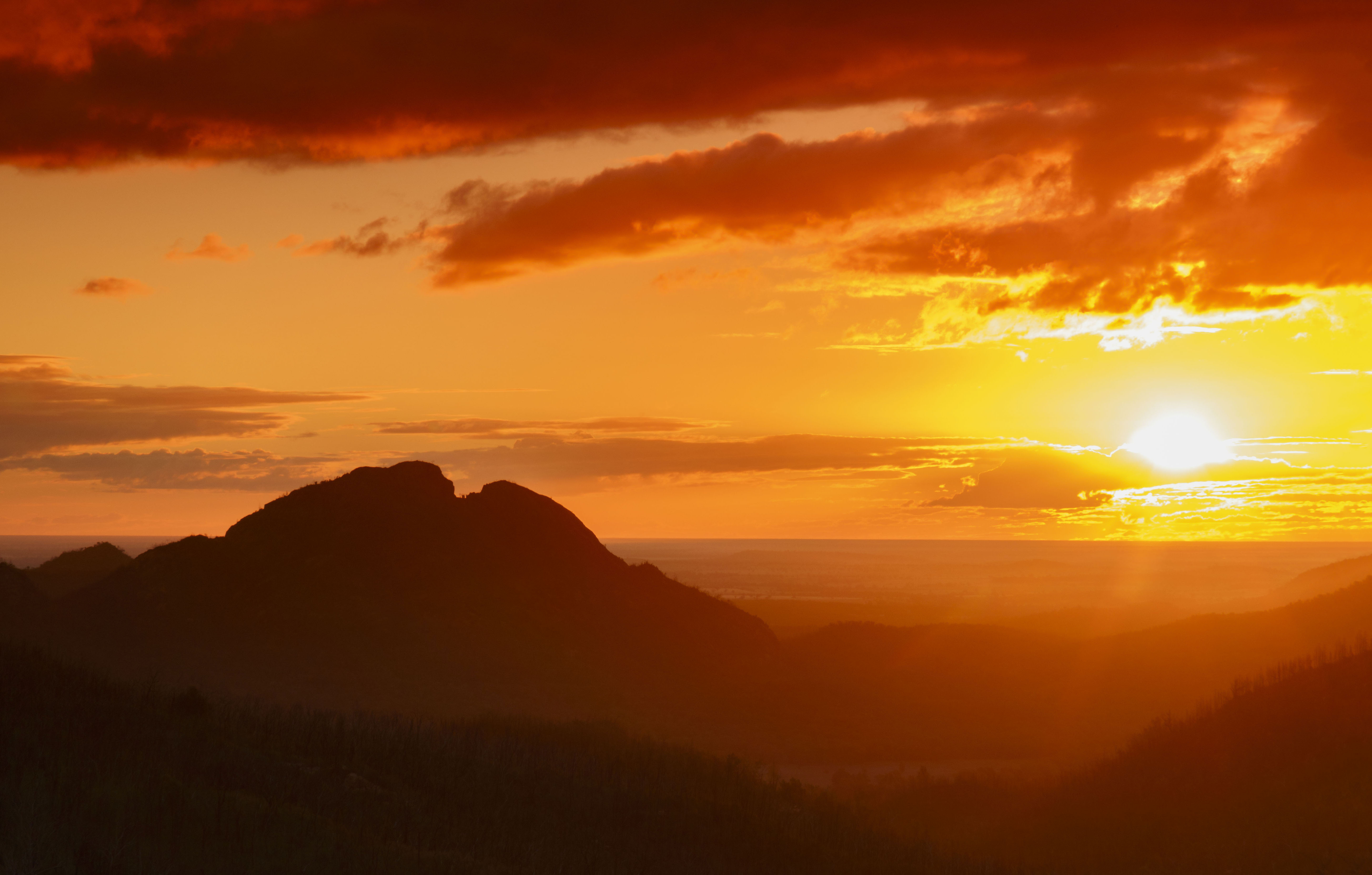 Silhouette – Spilt Rock from Whitegum Lookout in the Warrumbungle Mountains.