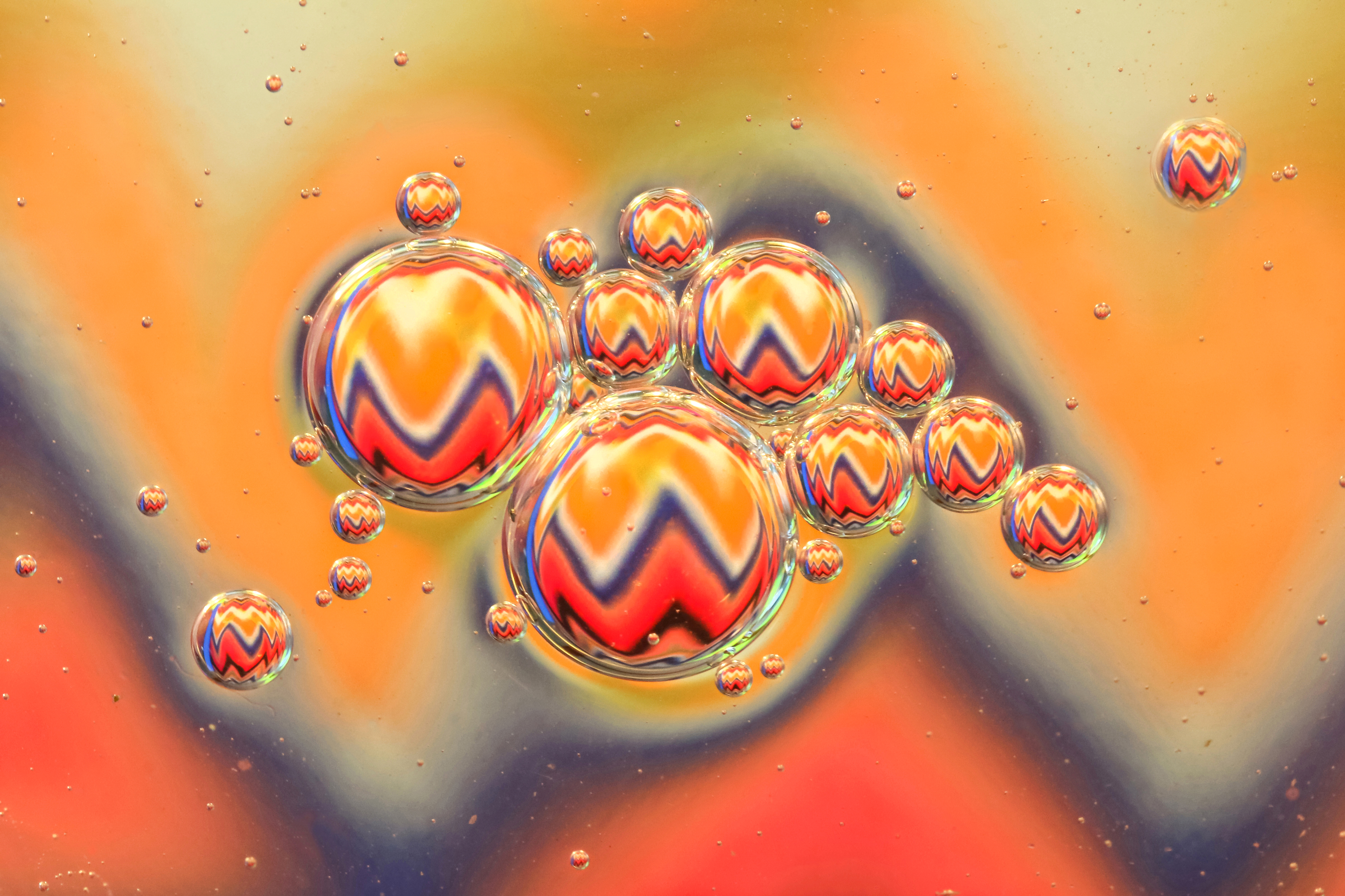 Another cooking oil & water shot. Why? Because I spent so much time chasing those damn breeze-blown bubbles around the bowl, trying to get the wrapping paper I taped to a cutting mat underneath to be reflected in each of the bubbles in the cluster. This setup did my head in because the pattern was very strong & the lens wanted to focus on it, not the bubbles. Manual focus isn’t an option with my dodgy eyes. So close to giving up, so was pretty happy when I saw this on back of the camera, given the paper’s zigzag pattern was fuzzy & didn’t have crisp outlines, the bowl was old & cloudy, I couldn’t use a tripod, I wanted f/11 to keep more bubbles in focus, ISO was already high & despite lamps lighting the underside, the resulting shutter speed was ridiculously low for my shaky body to handhold. Despite it all, I love the colours & hazy-matte effect I got .. just the look I was after!!!