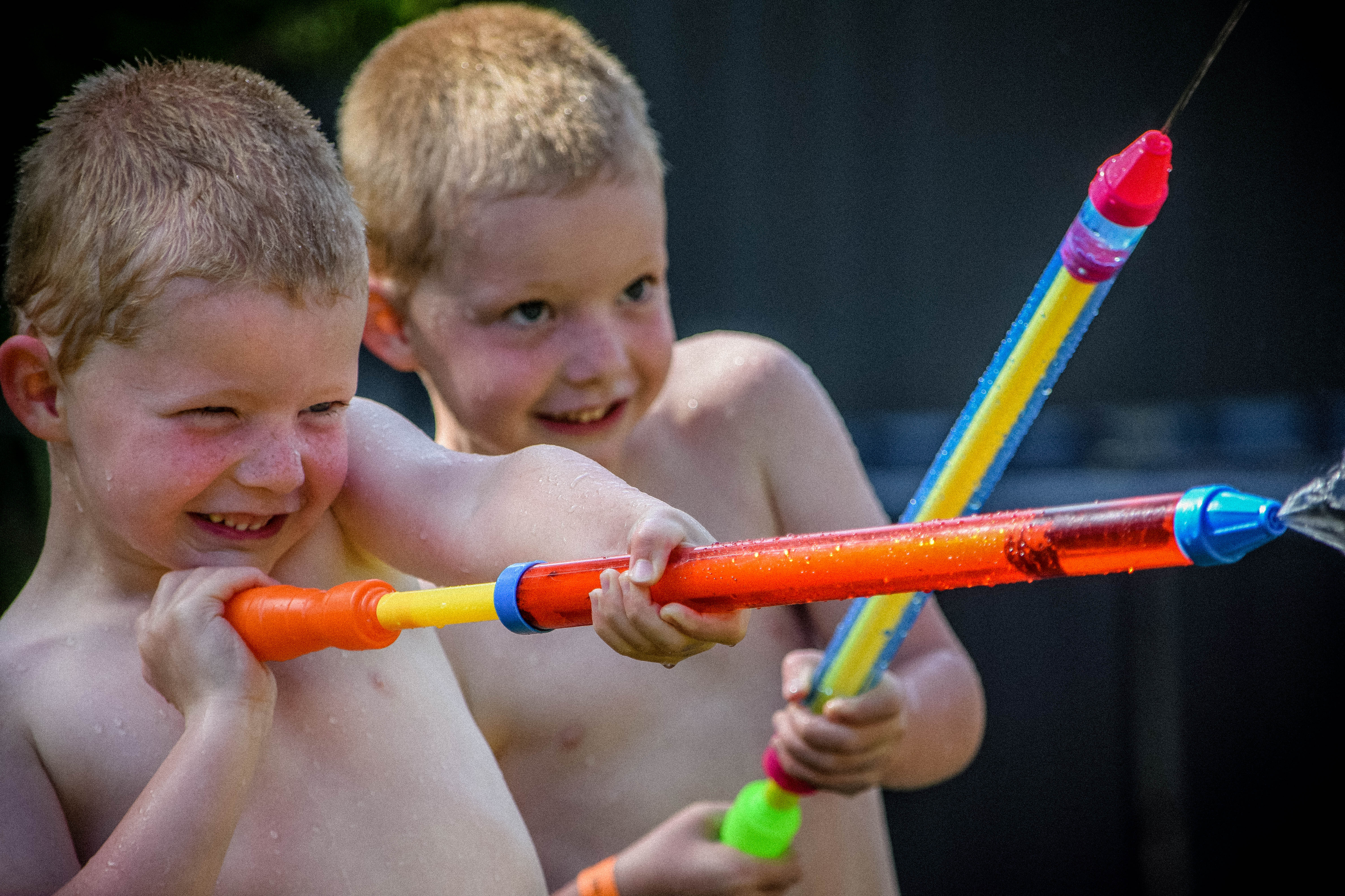 I took this photo of my boys in the middle of a water fight with their cousins. I was focused on Jake but still wanted Evan to be visible in the photo without being the star.